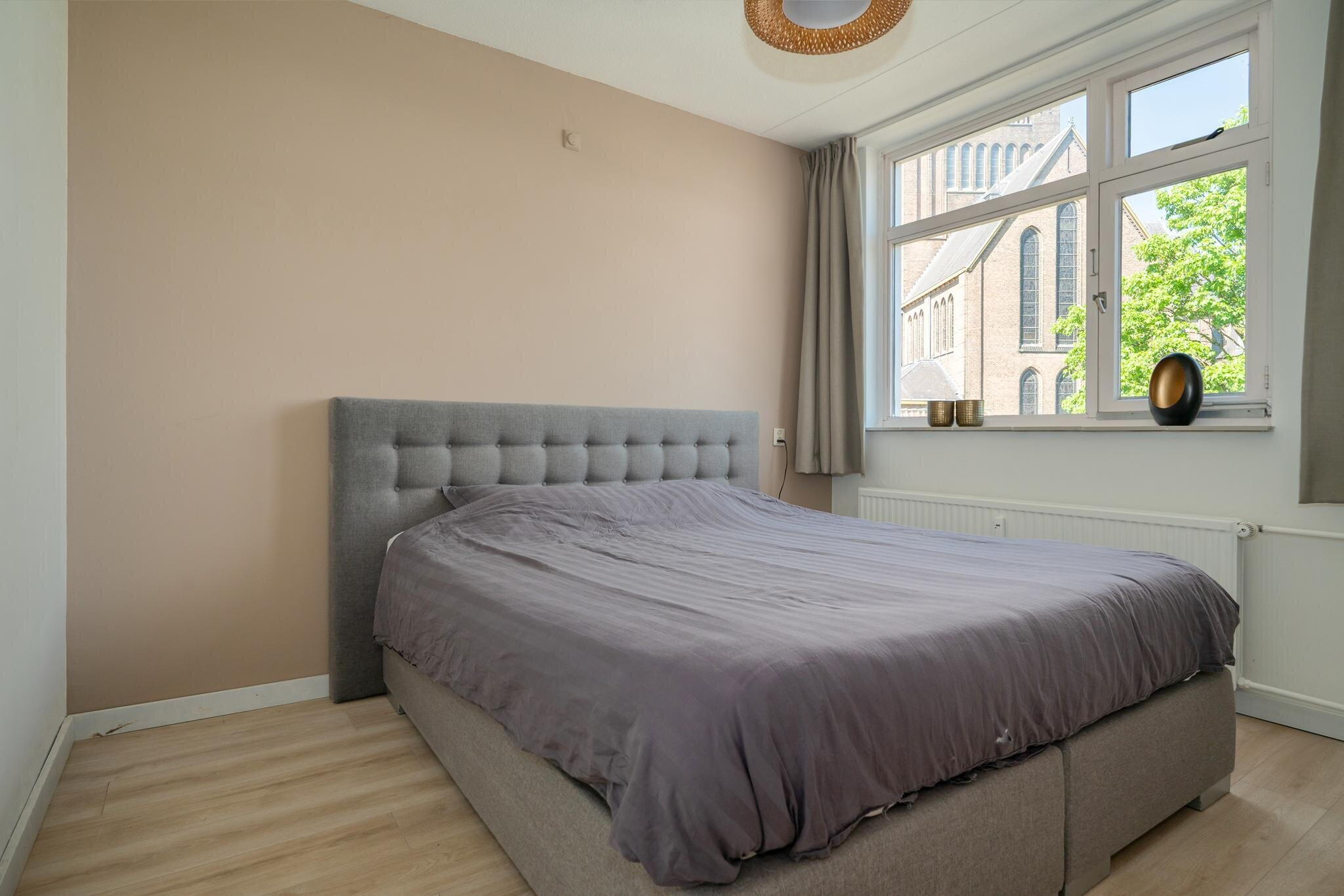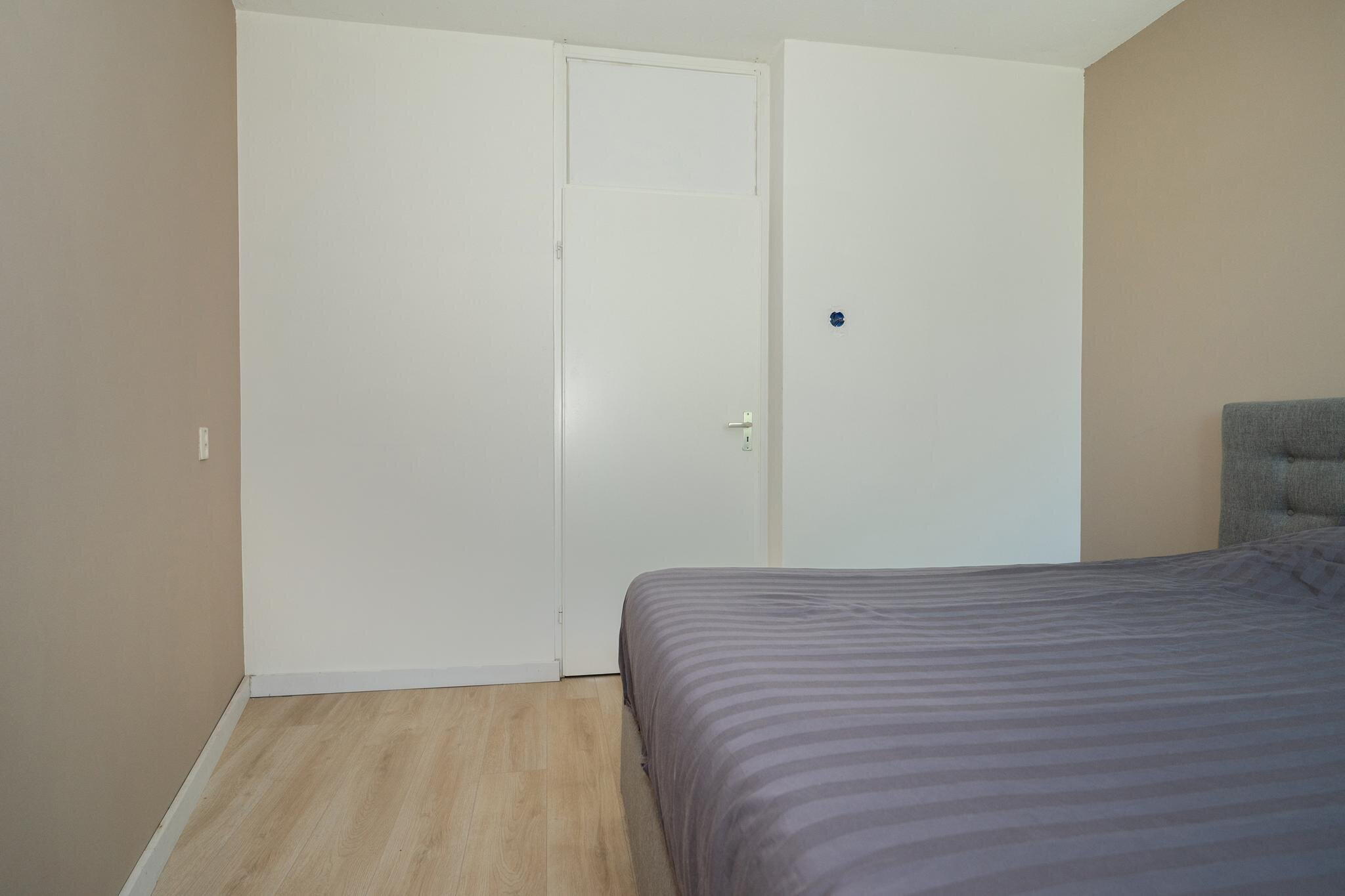 De slaapkamer (ca. 3.49 × 2.70 m) is gelegen aan de achterzijde van het complex en is eveneens voorzien van een laminaatvloer.